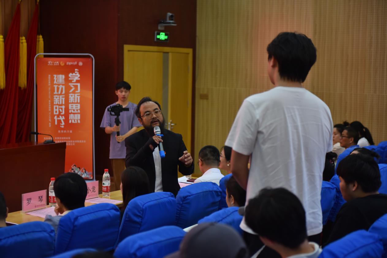 活动现场气氛热烈,互动提问环节同学们纷纷举手,从大学生的生活、学习、自我习惯等方面向宣讲团提问,得到了宣讲团讲师们耐心、细致的解答。此次活动,充分展示了湖湘优秀青年的榜样力量,“青言青语”的阐释,让师生们更加深刻地理解了中国式现代化的丰富内涵与意义,引导广大青少年成为习近平新时代中国特色社会主义思想的坚定信仰者和忠实实践者,成为堪当民族复兴大任的时代新人,为全面建设社会主义现代化新湖南凝聚团结奋斗的青春力量。