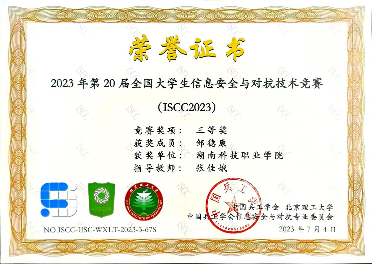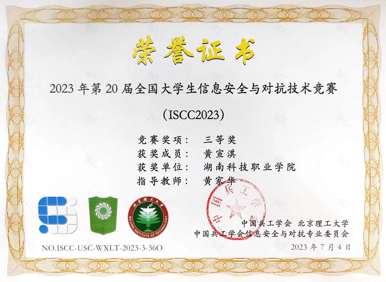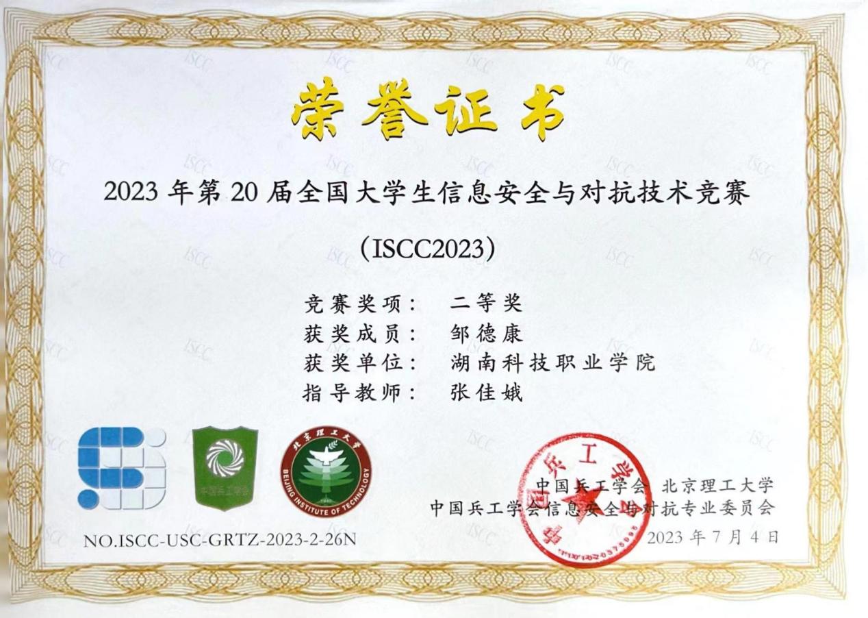 在全国大学生信息安全与对抗技术竞赛(ISCC2023)的激烈竞赛中,人工智能学院计算机网络技术专业李正军、张佳娥、李丹和黄家华等老师指导的苏玉辉、黄宣淇、邹德康和周豪发挥出色,斩获一系列荣誉。他们在25天的挑战中,展现出卓越的技能、独特的创新能力以及强烈的信息安全意识,最终脱颖而出,勇夺特等奖1项、一等奖1项、二等奖2项,以及无限擂台赛一等奖1项、三等奖2项。