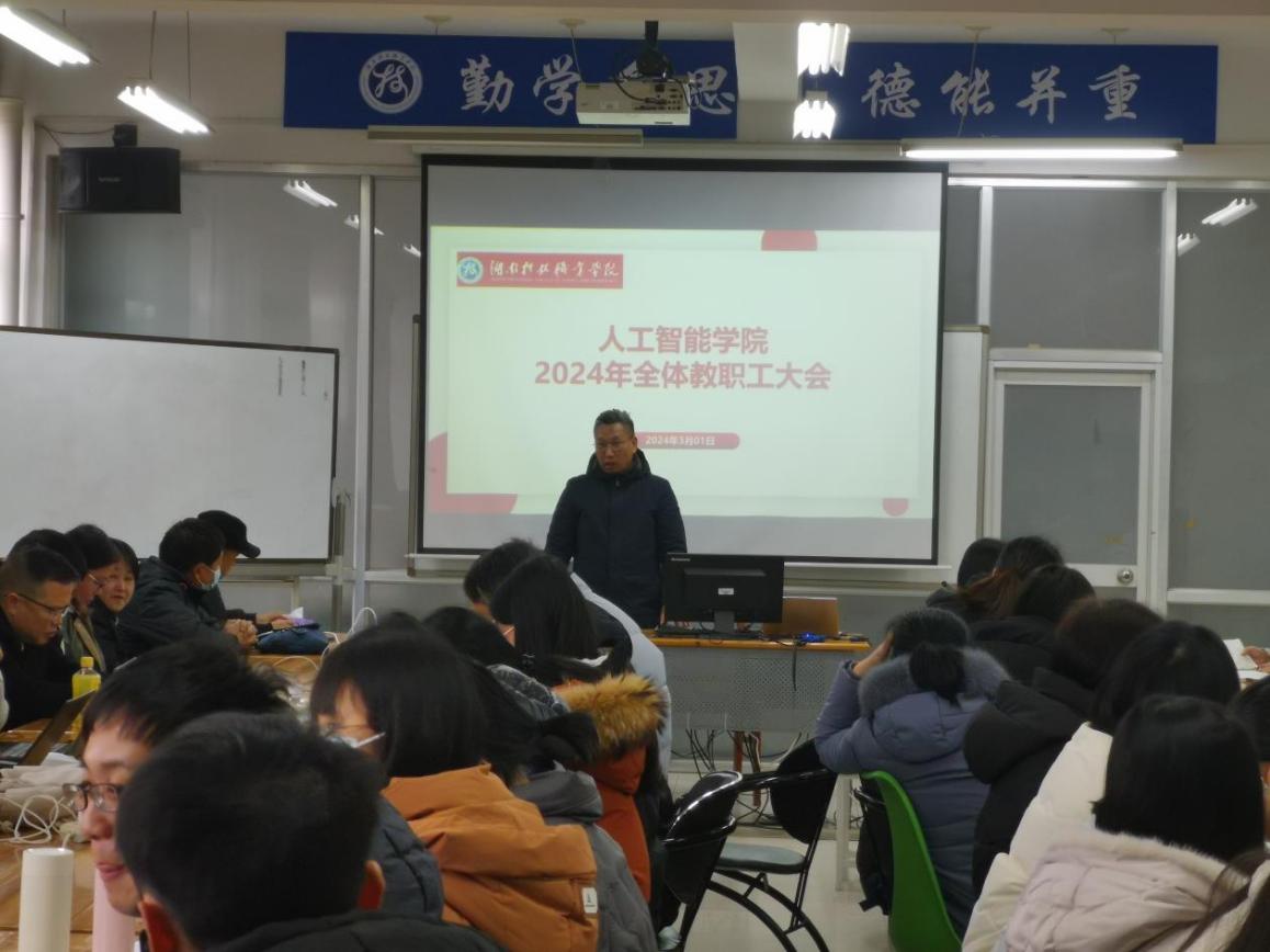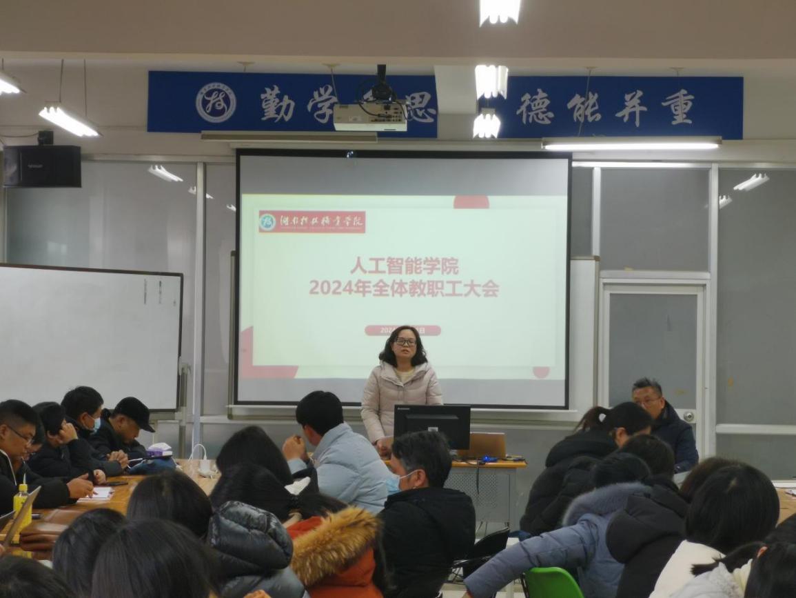 高登从三个方面详细阐述了我院2024年的发展规划:一是盯紧一个目标,把稳学院发展方向舵;二是实施两大工程,夯实学院发展主心骨;三是聚焦三个赛道,跑出学院发展加速度。随后,她以“责任、团结、创新”三词寄语全体教职工,希望大家坚守责任担当,加强团结协作,不断改革创新,为人工智能学院2024年的发展再添动力。