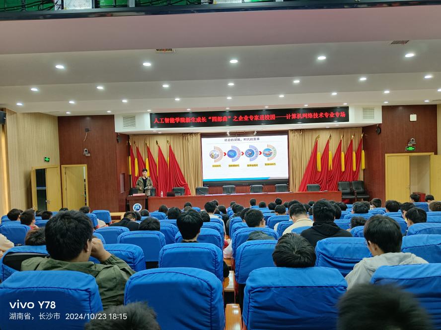 10月23日至24日,人工智能学院在雨花校区及天心校区南院成功举办了以“拓行业视野,规职业未来”为主题的企业专家进校园活动。作为“新生成长四部曲”的重要组成部分,此次活动邀请了来自不同企业的五位企业专家,为2024级全体新生带来了内容丰富、实用性强的专业讲座,旨在帮助学生深入了解行业动态,树立职业规划意识,为未来的职业生涯奠定坚实基础。