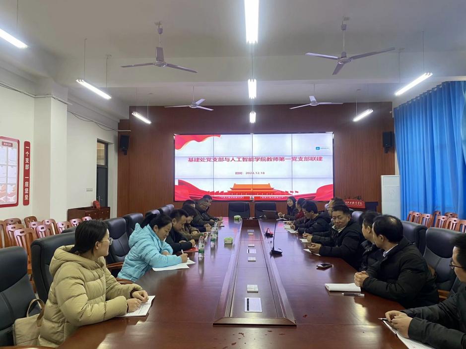 12月18日,以“一月一课一片一实践”主题党日活动开展为契机,基建处党支部与人工智能学院教师第一党支部齐聚天心北校区软件大楼216会议室举行联学共建活动,旨在通过双方的合作与交流,共同推动学校各项事业的发展。基建处党支部书记黄毅主持活动。