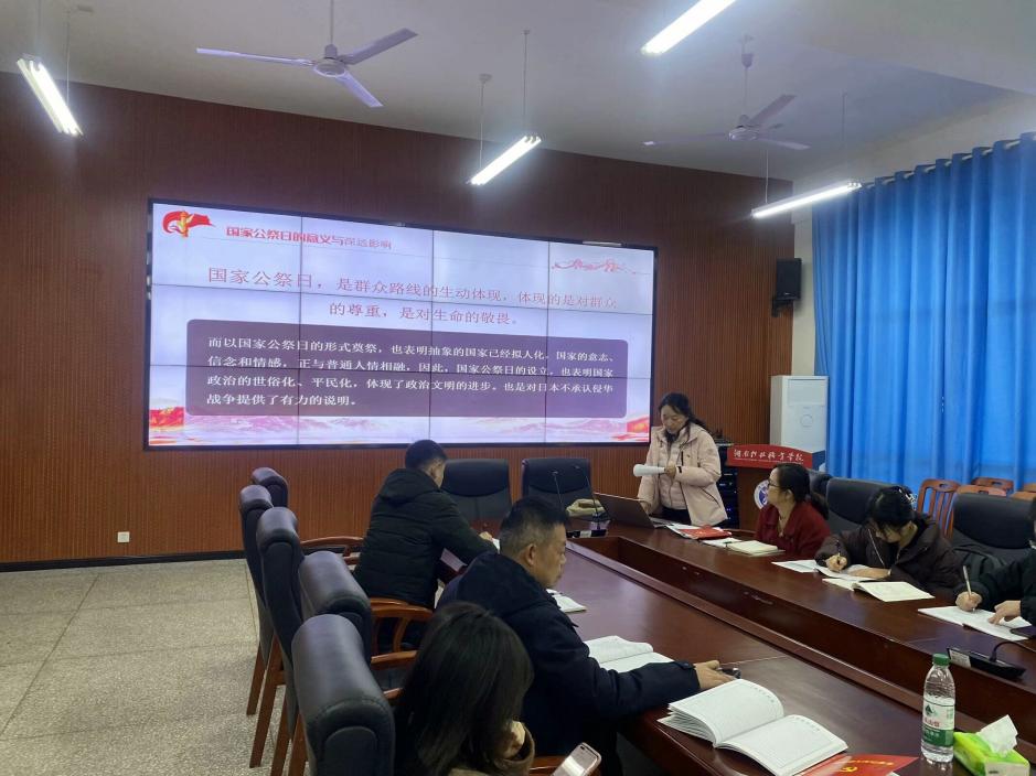 在讲授主题党课环节,黄毅和杨灿分别讲授了《守正创新是进一步全面深化改革必须坚守的重大原则》和《守正不丢根,创新不失魂:教师党员的责任与担当》主题党课,深入浅出地阐述了守正创新的重要性和教师党员的责任担当。随后,王敏和周要两位党员教师以国家公祭日为主题讲授了微党课,进一步激发了与会人员的爱国热情和民族自豪感。汪林玉、彭蹦两位党员教师进行了交流发言,分享了学习心得和体会。