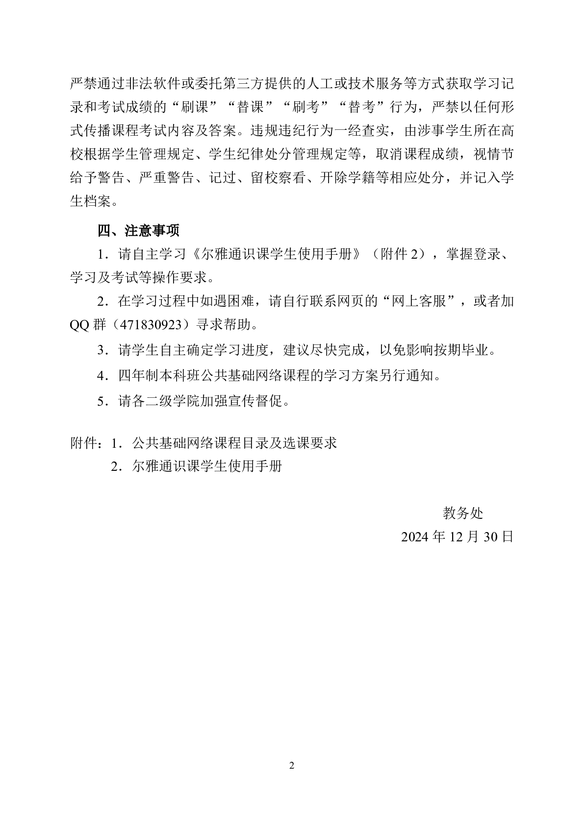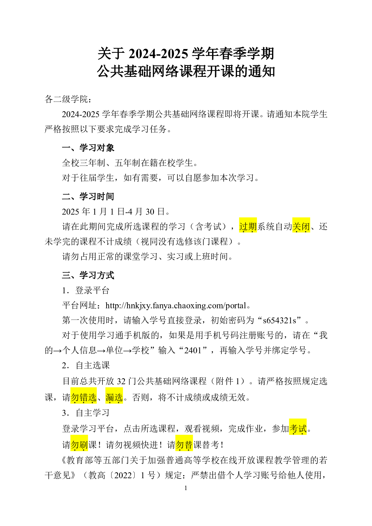 关于2024-2025学年春季学期公共基础网络课程开课的通知
