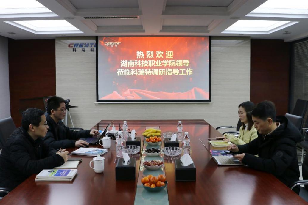 1月15日,人工智能技术应用专业张群慧教授与骨干教师彭辉,前往湖南科瑞特科技有限公司进行企业调研。此行受到了公司董事长阙正湘与行政经理曹芳的热情接待,双方展开了深度交流。