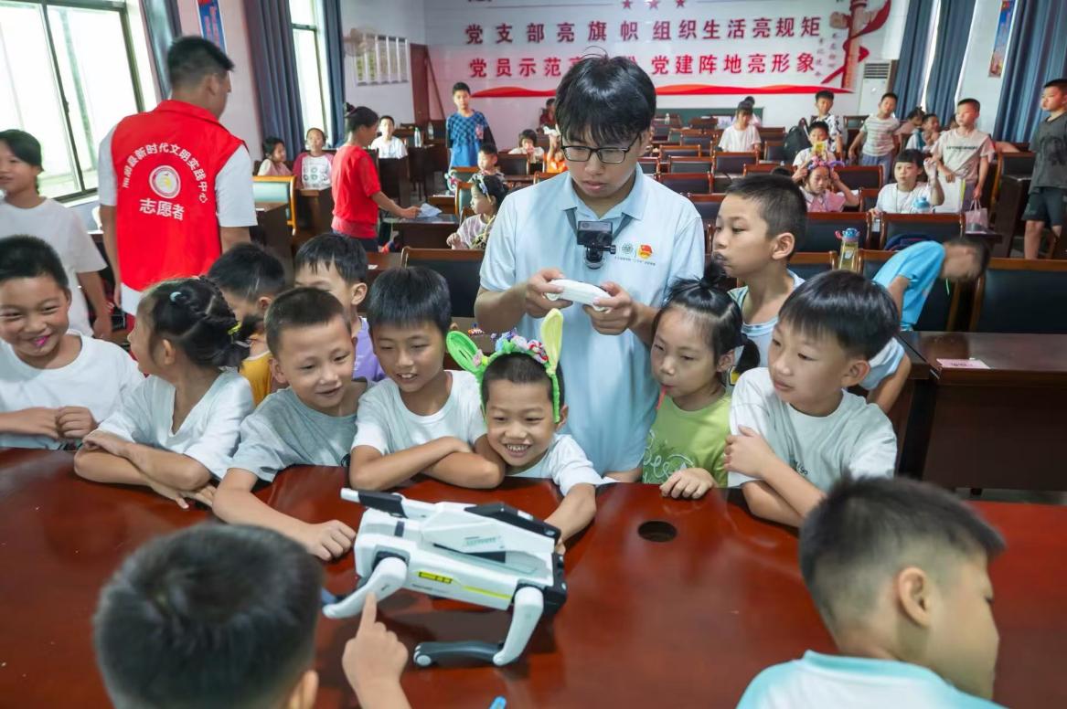 为拉近城乡数字鸿沟,实践团精心设计了一系列AI科普活动。机器狗在教室里灵活翻腾,引得孩子们惊呼连连;AI“活化”的童趣画作,让抽象技术变得触手可及;编程课上,红绿灯指令成功运行的瞬间,孩子们眼中闪烁的光芒,比夏日的骄阳更耀眼。这些生动的课堂,不仅点燃了乡村儿童对科技的探索热情,更在他们心中埋下了追逐智能未来的种子。