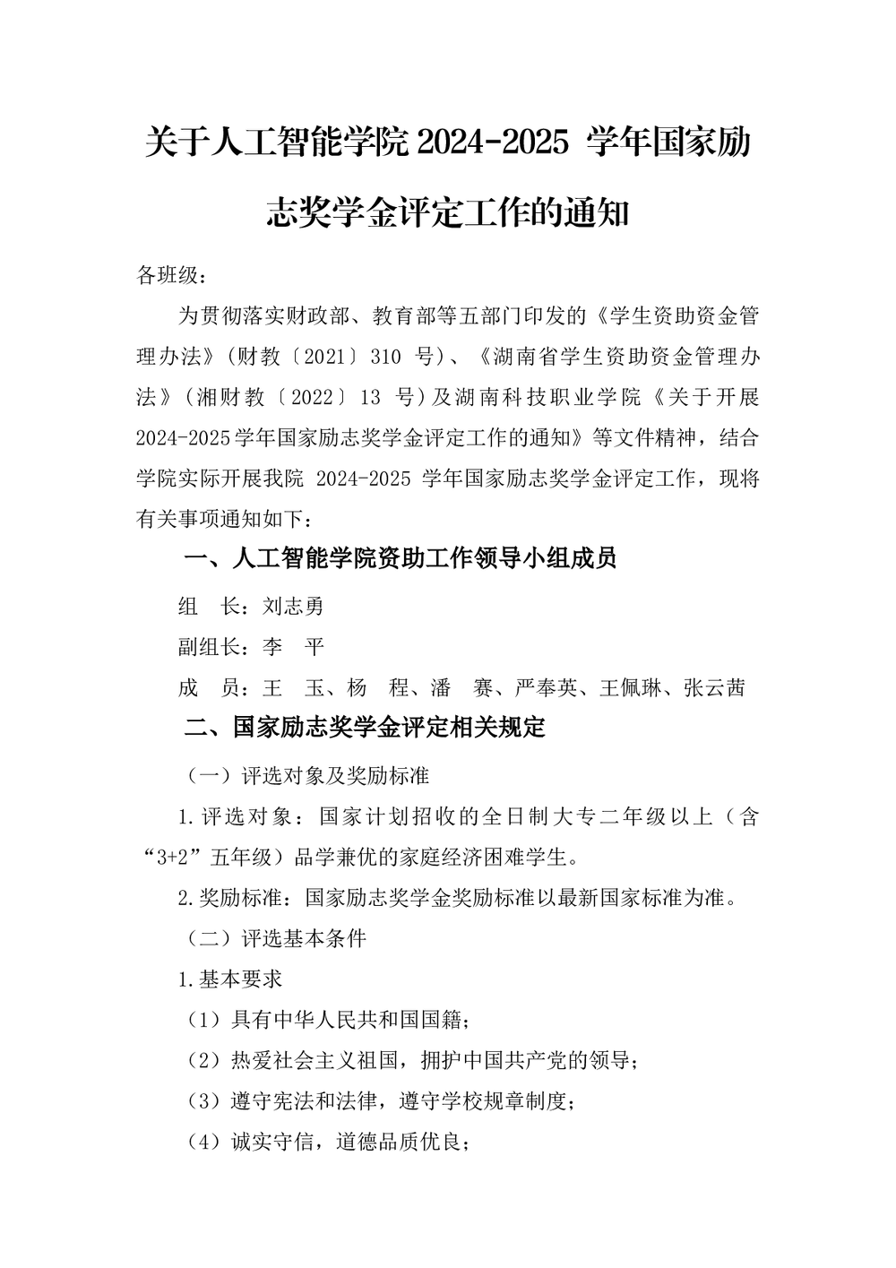 关于人工智能学院2024-2025学年国家励志奖学金评定工作的通知