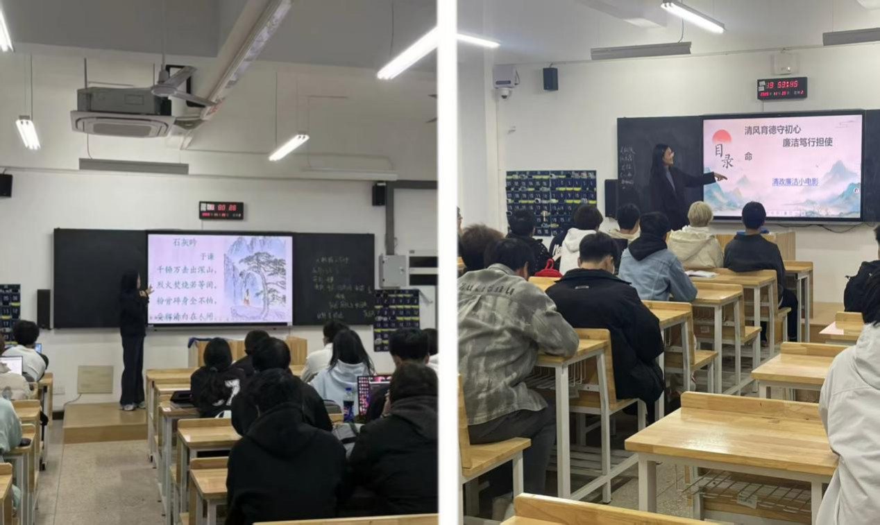 学生党支部组织党员老师在大一、大二各班级开展廉洁教育主题班会。班会紧扣“清风育德守初心 廉洁笃行担使命”核心主题,围绕青年学子廉洁自律要求开展专题宣讲,结合校园廉洁典型案例深入剖析,深入浅出地解读“廉洁笃行”的深刻内涵与重要意义,引导同学们牢固树立正确的权力观与价值观。