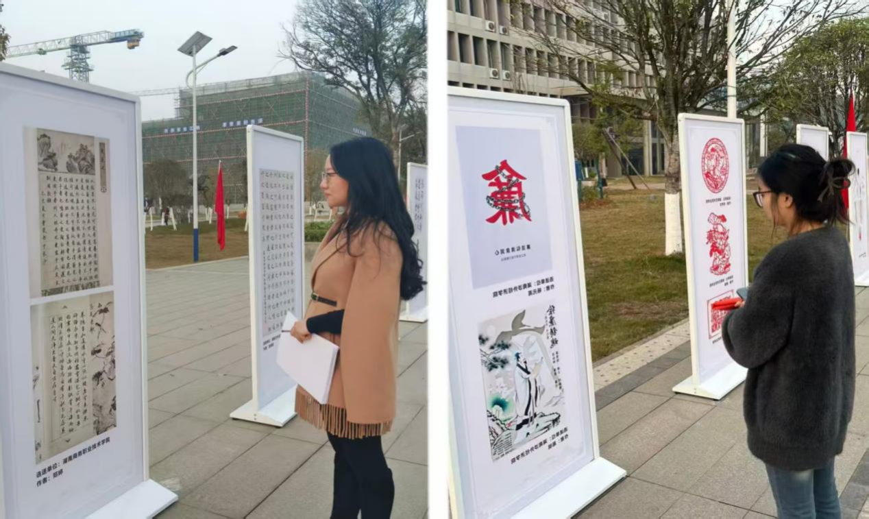 支部党员教师带领入党积极分子集体前往我校知行广场参观驻厅纪检监察组“四个协同”第一片区高校优秀廉洁文化作品巡展。作品涵盖书法、绘画、创意设计等多种类型,兼具思想性与艺术性,表达和传递了廉洁内核。