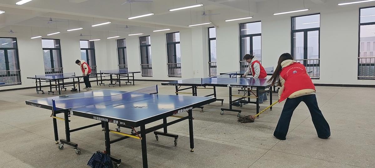 在乒乓球室,师生们对室内进行了“地毯式”清理:清扫地面、擦拭乒乓球桌、将散落的球拍和球具整理归位,连角落里的积尘也被彻底清除。经过大家的努力,运动空间焕然一新,静待同学们课后来此挥洒汗水。经过一下午的劳动,教学楼内处处焕然一新。
