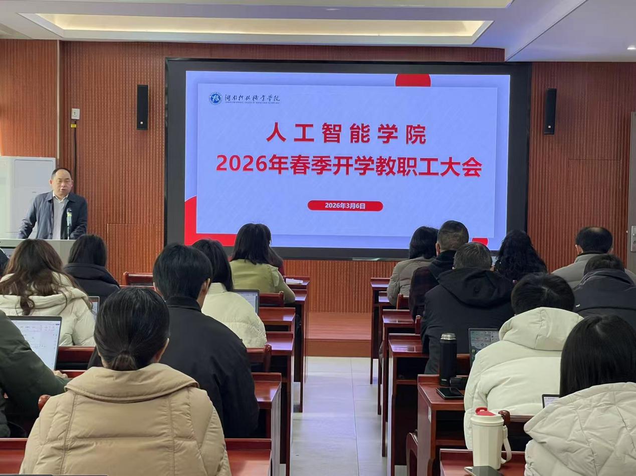 3月6日上午,人工智能学院在天心校区北院创新创业楼237会议室召开2026年春季开学教职工大会,全面复盘2025年工作,系统谋划2026年发展蓝图。全院教职工参会,学院党总支书记刘志勇主持会议。