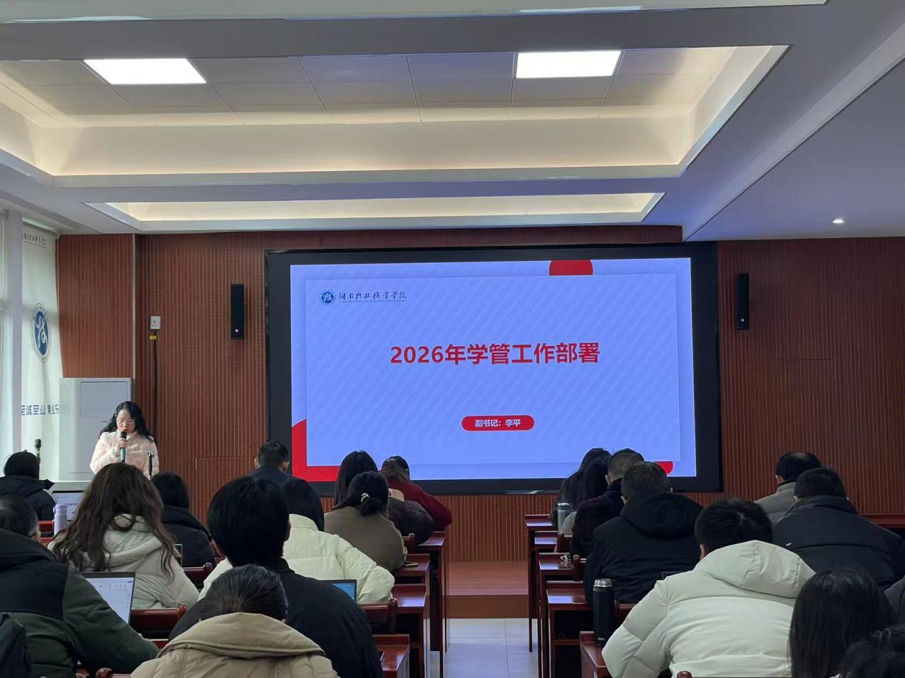紧接着,学院副院长周要和副书记李平分别就新学期开学教学工作、学生管理工作作出具体部署。周要强调,全院上下要深入学习《教育部关于深入职业教育教学关键要素改革的意见》等文件精神,重点抓好开学第一课、教材发放、期初教学检查、补考与成绩录入、学业预警、单招工作、计算机等级考试、实训室项目论证、实习就业等核心任务。李平围绕学校发展目标与学院中心工作,提出筹建辅导员工作室,明确其定位与发展方向,推动学生工作从基础管理向精细化、育人化转型;同时紧扣“七彩育人”体系要求,细化学生管理任务分工,全力推进学生工作规范化、品牌化、特色化建设。
