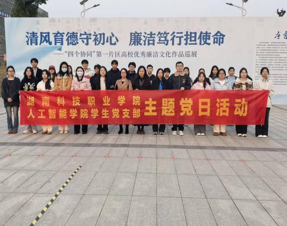 2025年11月至12月,支部以“清风育德守初心 廉洁笃行担使命”为主题,开展廉洁教育主题班会,组织参观廉洁文化作品巡展。第46期入党积极分子鄢婷感慨:“在欣赏艺术之美的同时,更接受了一次深刻的廉洁思想洗礼。”