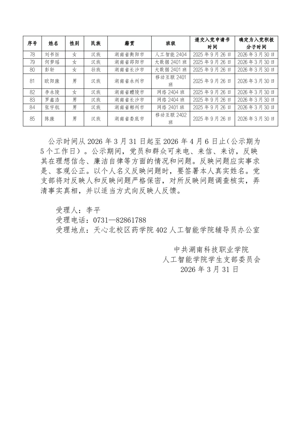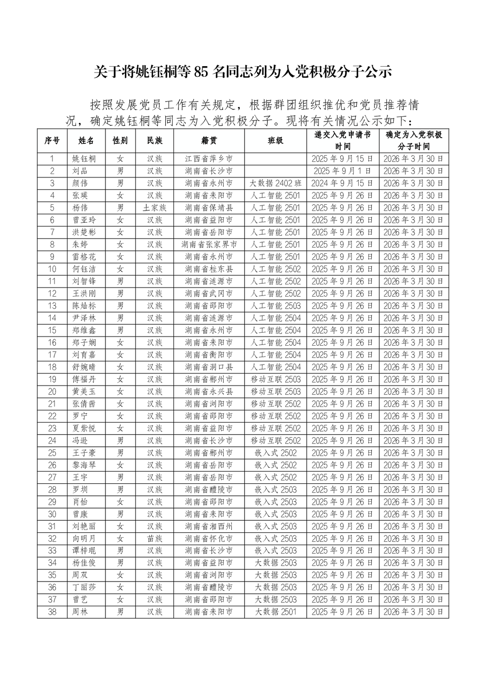 关于将姚钰桐等85名同志列为入党积极分子公示